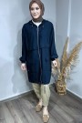 Etek Ucu Lastikli Paraşüt Trenç-Lacivert